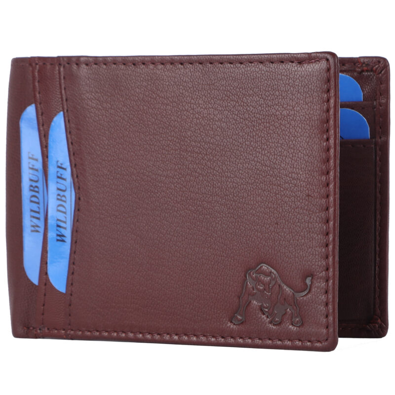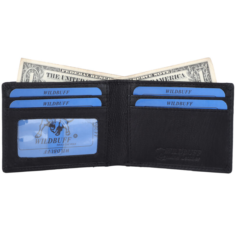WildBuff Black Bifold Leather Wallet (WB601) 4 Card Slot