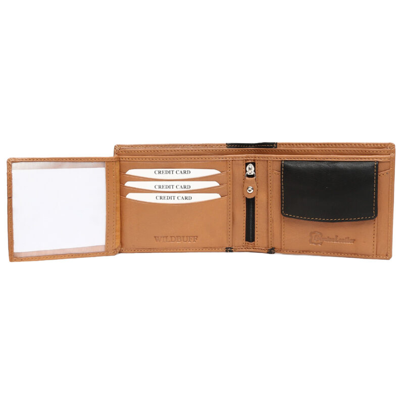 WildBuff Black Bifold Leather Wallet (WB601) 4 Card Slot