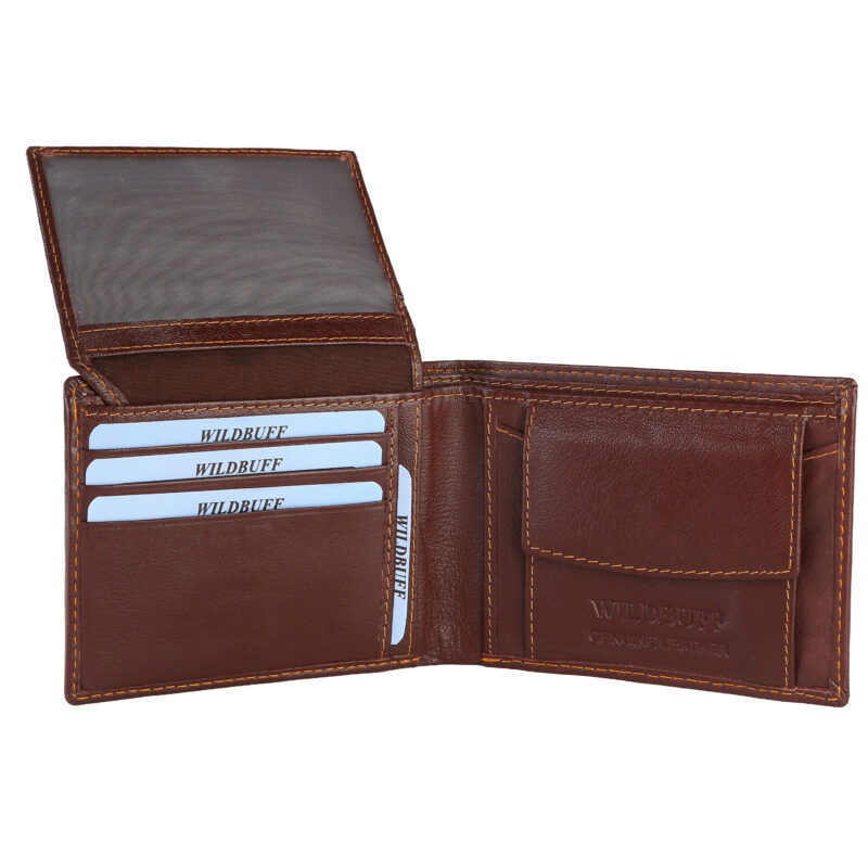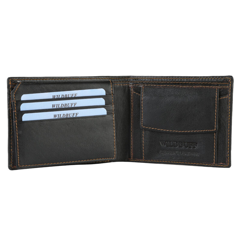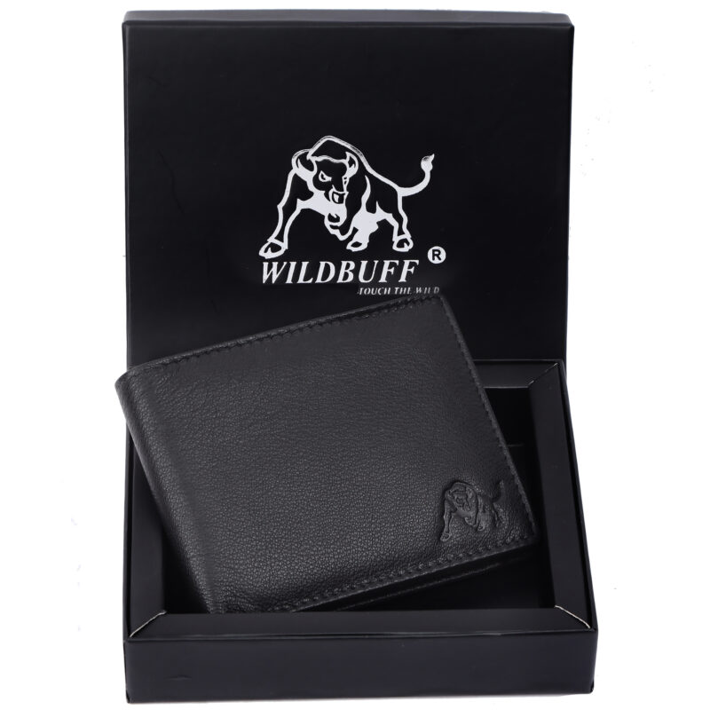 WildBuff Black Bifold Leather Wallet (WB601) 4 Card Slot